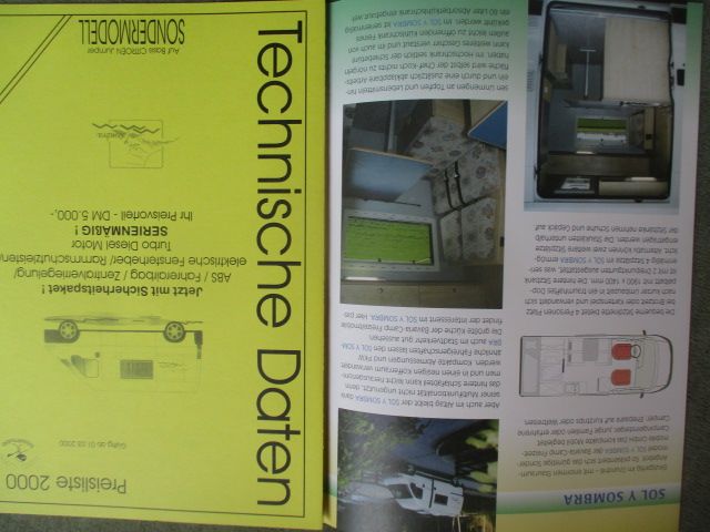 Bavaria-Camp Sol Y Sombra 3/2000+Preise,Basis Citroen Jumper,4 Seiten stark, Preisliste dazu.