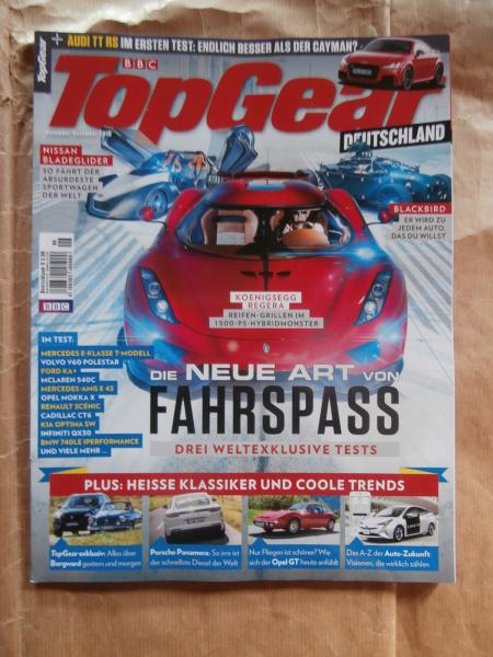 BBC TopGear 6/2016 Panamera 4S Diesel, Audi TT RS,Infiniti QX30,BMW 740Le iPerformance,Cadillac CT6,Ka+,Cayman GT4 MR,Scénic, E-Klasse T-Modell BR213,McLaren 540C,Opel Mokka X,Kia Optima Sportswagon GT,elon musk,Harledy Davidson Iron 883 vs. Roadster,neuwertiges Heft.