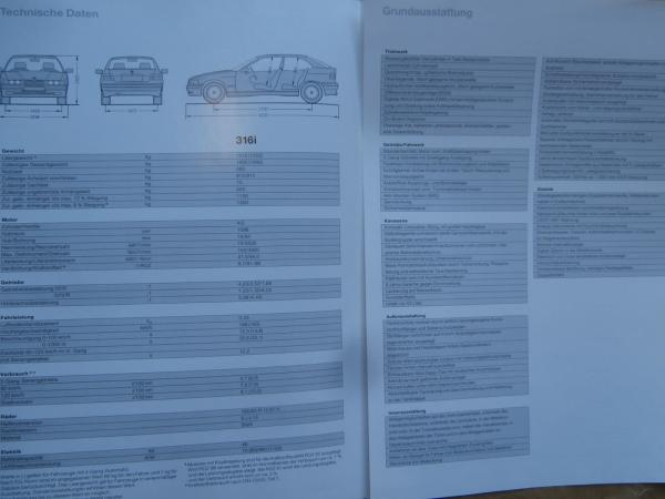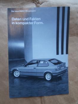 BMW 316i E36/5 Compact Daten und Fakten März 1994, Preise,Technische Daten, 6 Seiten stark,ausfaltbar, sehr selten.