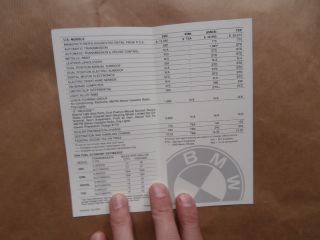 BMW 320i E21 528e E28 633CSi E24 733i E23 Pricelist USA 1982