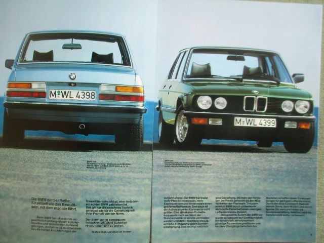 BMW 518i 520i 525i 528i M535i E28 September 1984, 46 Seiten stark, mit Datenblatt 525e miat Katalysator 90kw/122 PS, sehr seltener Facelift Katalog,teils noch mit alten Fotos,viele ausklappbare Seiten,Deutscher Text.