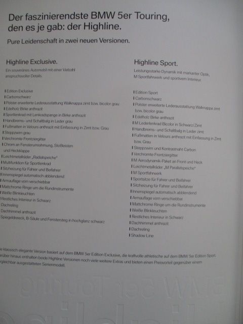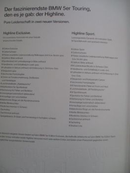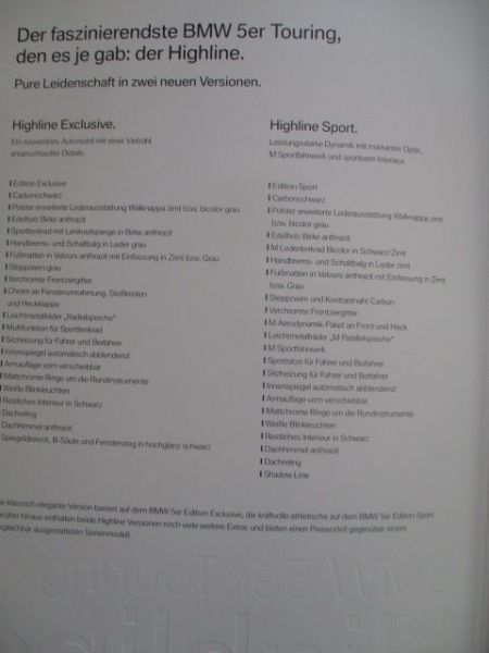 BMW 5er E39 Touring Highline Fotomappe Highline Exclusive und Sport 2004 Großformat 30x42cm,mit Einzelgroßformat Fotos (Hochglanz), es gab von der Highline Version Touring nur ganz wenige Mappe, als Limousine wurden viel mehr über die Händler verteilt.Versand in BRD als Paket.Ausland bitte vorab erfragen. Einzelstück!