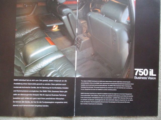 BMW 750iL Business Vision E32 Prospekt Individual September 1993 Rarität,mittig ausklappbar, 8 Seiten stark, 3 Sprachig, ultraselten, keine Drucknummer.