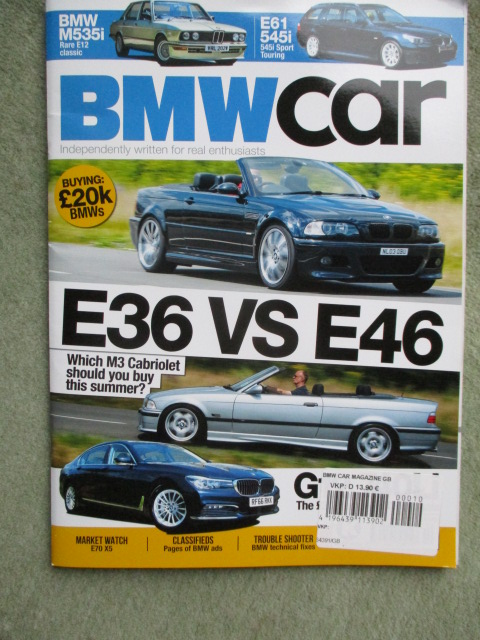 BMW car 10/2020 E36 vs. E46 Cabriolet, M535i E12, 545i E61 Touring, X5 E70,740Li G12,neuwertiges Heft aus England.