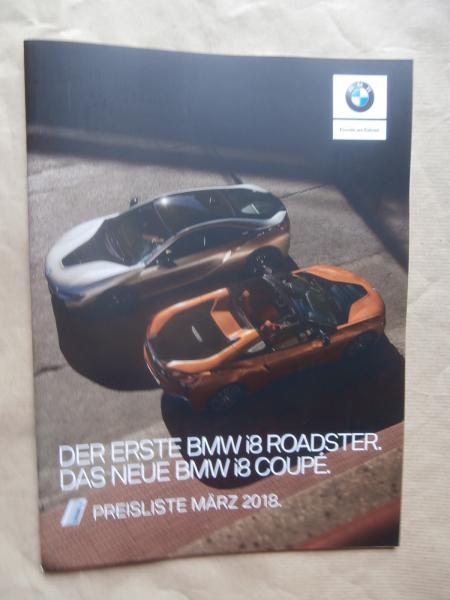 BMW i8 Roadster (i15) i8 Coupé (i12) Preisliste März 2018