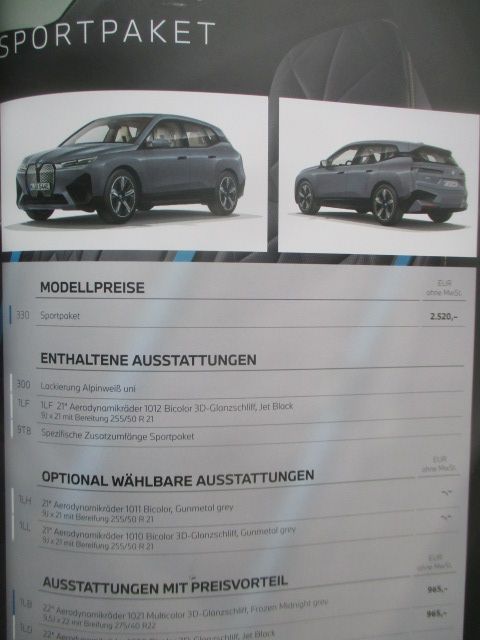 BMW iX xDrive40 50 (i20) Katalog +Preise Version Austria Januar 2022 mit Sportpaket,Ausstattungen,Farben/Polster, 37 Seiten stark,neu, Einzelstück aus Österreich