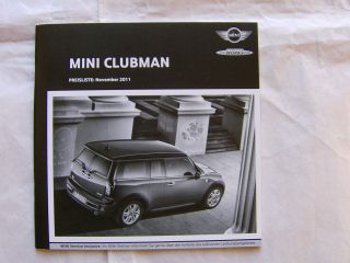 BMW Mini Clubman One Cooper +S +D +SD +JCW November 2011 Preisliste mit Sondermodell SOHA,