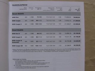BMW Mini Preisliste Clubman +Cooper S +D +SD R55 Juli 2011