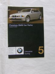 BMW Preisliste 5er Reihe Limousine Touring E39 SCHWEIZ