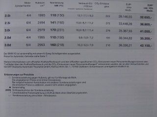 BMW Preisliste X3 E83 2.0i 2.5i 3.0i 2.0d 3.0d September 2005