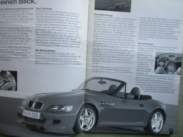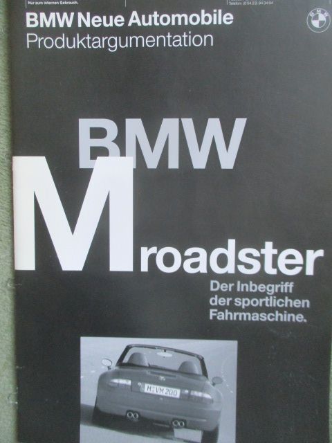 BMW Z3 M Roadster E36/7 Produktargumentation Oktober 1996 mit Farben, Polsterungen, Sonderausstattungen, Vergleich mit Chrysler Viper RT/10 und Chevrolet Corvette Convertible und Morgan Plus 8 und TVR Griffith 500, 15 Seiten stark,guter Zustand,sehr selten.....
