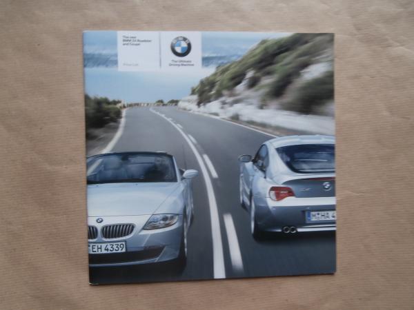 BMW Z4 Roadster 2.0i SE 2.5iSE I Sport si SE Roadster 3.0si SE +Coupé E86 Pricelist March 2006,englische Preisliste,sehr ausführlich.A5 Format 24 Seiten stark, Hdl.Stempel hinen drauf.