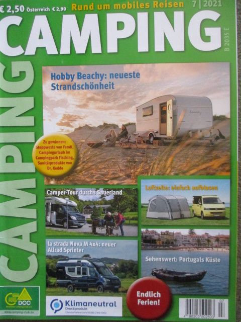 Camping 7/2021 la strada Nova M 4x4 Allrad Sprinter,Tabbert Rossini Finest Edition, Caravelair Artica 496 Family Hobby Beachy,Opel Zafira Life Croscamp Lite,Morelo Grand Empire,Frankia Platin Final Six,gebrauchtes Heft.