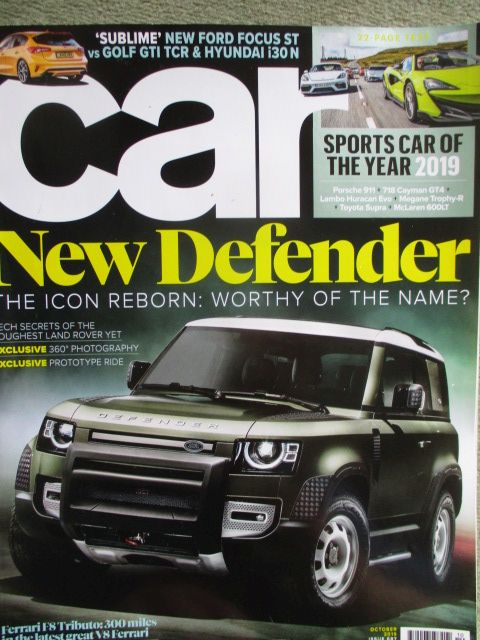 car 10/2019 Ferrari F8 Tributo,Vauxhall Astra, Porsche 935, Volvo XC90 B5,VW ID Buggy,Skoda Kamiq,Porsche 911 Carrera (992),Bugatti Centodieci,Alpina XD3,Porsche 718 Cayman GT4,Ford Focus ST vs. VW Golf GTI TCR vs. hyundai i30N,Lexus RX450h L, Porsche 718 Cayman GT4, Toyota GR Supra,Lamborghini Huracan Evo,McLaren 600LT Spider,englisches Heft.