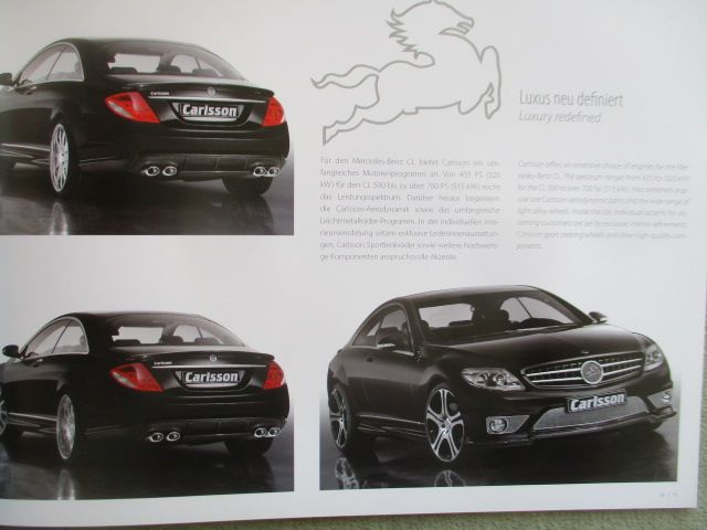 Carlsson September 2011 mit C25 Limited edition,W216,CS60,CK63 RS,BR204, CK63 RSR (Basis C63 AMG),SL,SLK, GLK,G-Klasse W463GL,smart, 51 Seiten stark,neuwertiger Zustand,sehr selten