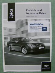 Chevrolet Epica Preisliste 1/2007 NEU, siehe Abbildung.