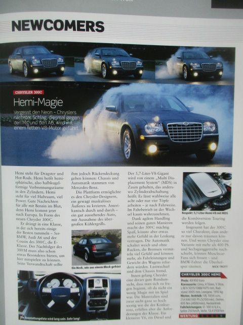 Chrysler 300C Pressestimmen, 22 Seiten stark, guter Zustand,sehr selten