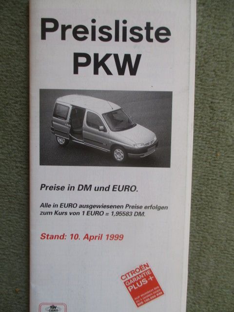 Citroen PKW Preisliste 10.April 1999 Saxo Xsara +Xantia +XM+Kombi,Berlingo,Evasion,Jumpy,Jumper,sehr ausführlich,selten.