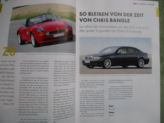 Classic Trader Magazin 1/2021 Design by Zagato BMW Bangle +Massimo Tamburini, Z8 E52