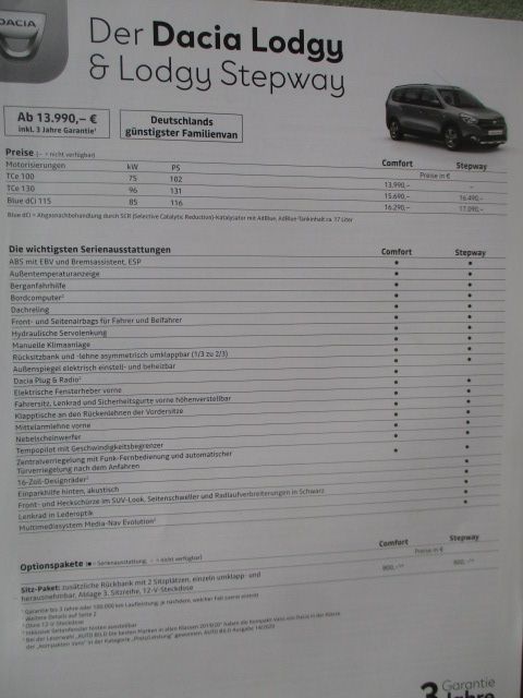 Dacia Lodgy & Stepway TCe 100 130 Blue dCi 115 Preisliste Januar 2021,4 Seiter.