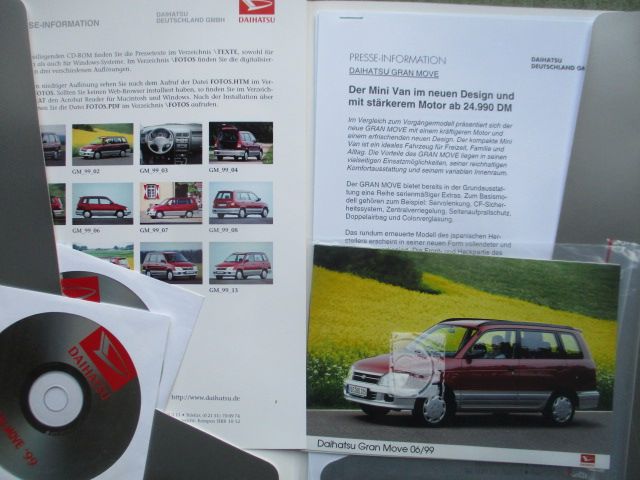 Daihatsu Gran Move Pressemappe 1999+Cuore,viel Text,viele Fotos, 2 CD-R, neuwertiger Zustand