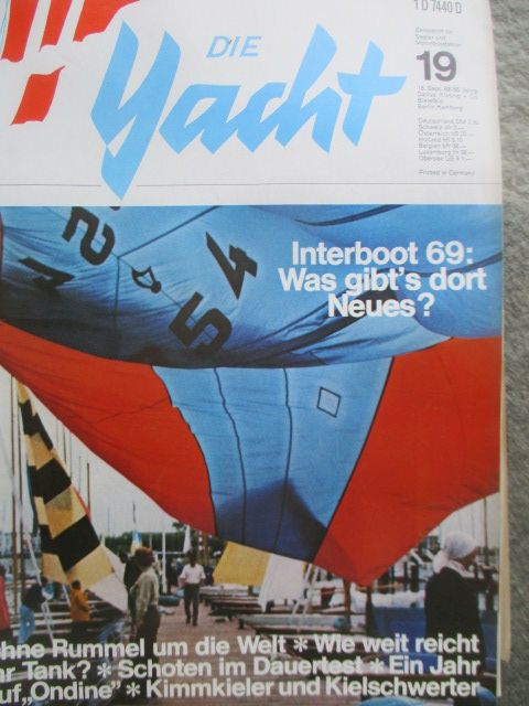Die Yacht 19/1969 Interboot 69, Test: 5,30-m-Kunststoffjolle Neptun 17,15,53-m Hochseeyach Jan Pott,166 Seiten starkes Heft