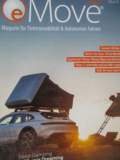 e Move 360 Grad Magazin 2-2023,Fahrbericht Kia Niro EV, Porsche Taycan Cross Turismo,Microlino,Smart number one,gebrauchtes Heft.