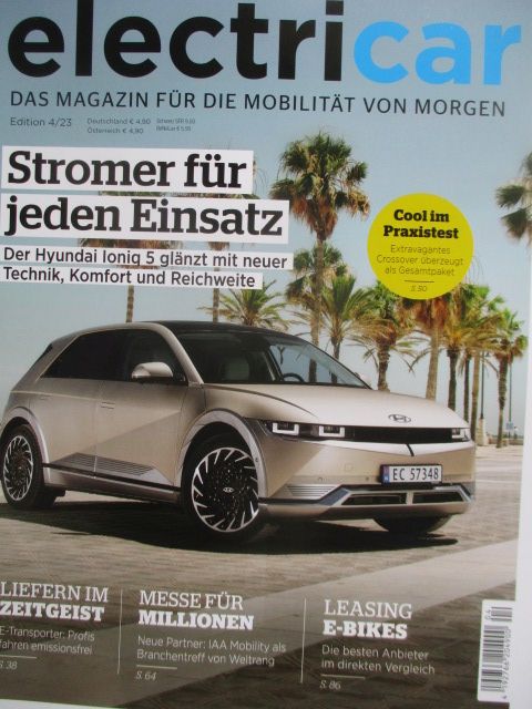 electricar 4/2023,Hyundai Ioniq 5,Opel Astra Electric, Ford Explorer Elektro, Volvo EX30,Opel Rocks-e,Aixam eCity Sport,Renault Twizy E-Tech,neuwertiges Heft.