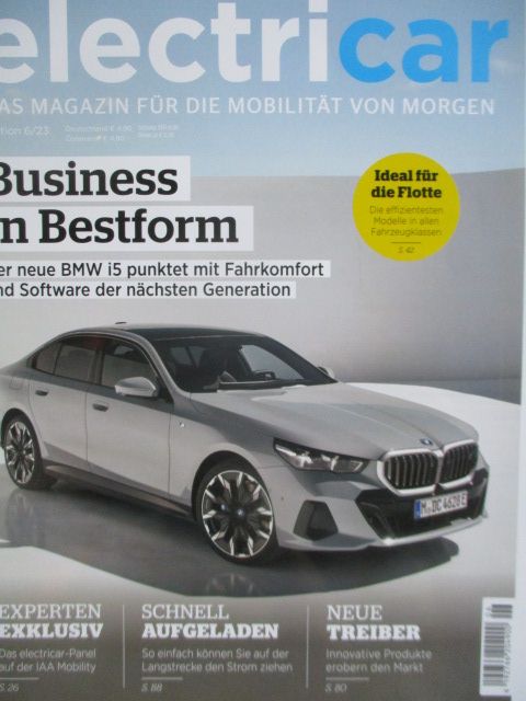 electricar 6/2023,der neue BMW i5 G60,Porsche Taycan 4 Cross Turismo, Genies Electrified GV70, Opel Astra Sports Tourer Electric, Hyundai Kona Elektro,neuwertiges Heft.