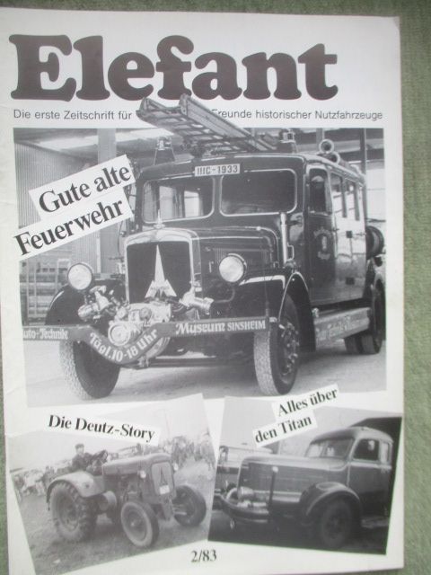 Elefant 2/1983 mit Hanomag1,5 Tonner (auto 1950),Deutz MTH 222 und F2M 315, MTZ 120 von 1929,Krupp Titan,Titan Super mit Tankaufbau von Ellinghaus, 36 Seiten stark, sehr selten guter Zustand