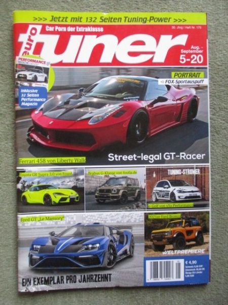 euro tuner 5/2020 Liberty Walk Ferrari 458, Foxed Toyota GR Supra 3.0,Fostla Brabus G-Klasse W463,Donkervoort D8 GTO-JD70,AC Schnitzer BMW F40,E-Golf,Novitec Esteso (Maserati Levante Trofeo),Dähler GR supra, Brabus 700 (AMG C63),Q4 E-tron sportback, Ares Design Panther Progrettouno,Ford Mustang Ultimate 302, BMW M5 Von M& D Exclusive Cardesign,Maxi-Tuner VW Golf7 GTI TCR,BMW M2 Competition von HS Motorsport F87,Range Roer Evouqe TD4 von Senner Tuning, Ford Bronco,Seat Tarraco 2.0TDI 4Drive,Opel Corsa F 1.2,Heft unten beschädigt,Angebot!
