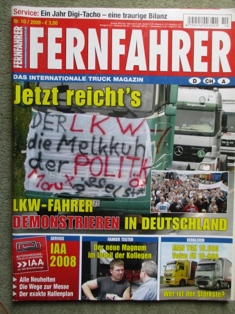 Fernfahrer 10/2008 MAN TGX 18.680 vs. Volvo FH 16-660,Renault Magnum 500.26,gebrauchtes Heft.