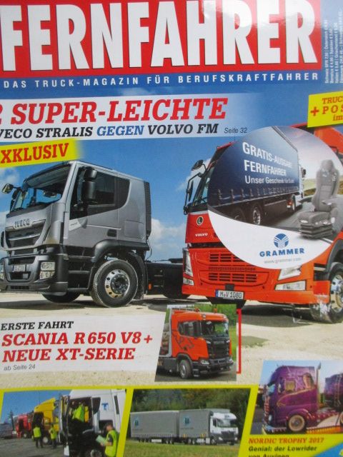 Fernfahrer 11/2017,Fahrbericht Scania R650,Iveco Stralis Super-Light vs. Volvo FM-Light, gebrauchtes Heft.