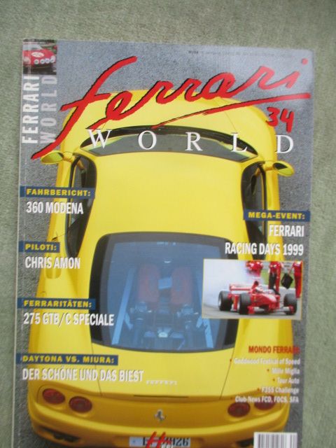 Ferrari World Nr.34,Fahrbericht 360 Modena,276GTB/C Speciale,Vergleichstes Ferrari 365 GTB/4 Daytona und Lamborghini P 400 Miura, Knick vorn Heft Mittig,Angebot!