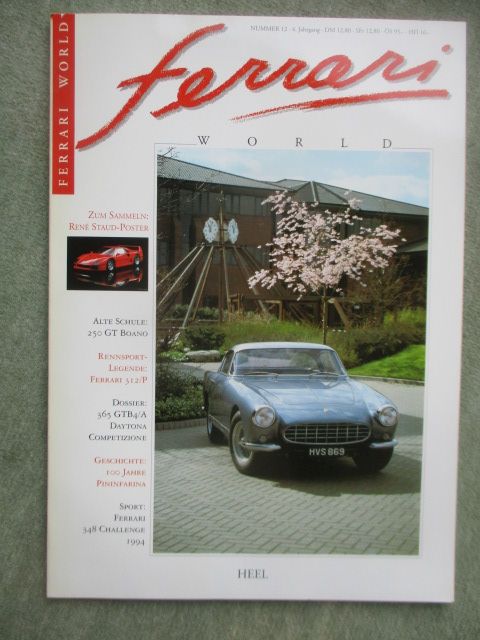 Ferrari World Nummer 12 mit 250 GT Boano, 312/P, Dossier 365 GTB4/A Daytona Competizione,100 Jahre Pininfarina, 79 Seiten stark.