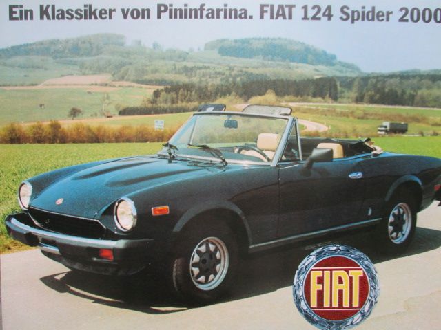 Fiat 124 Spider 2000 Pininfarina Prospektblatt, 77kw/105ps, sehr selten,ohne Datum.