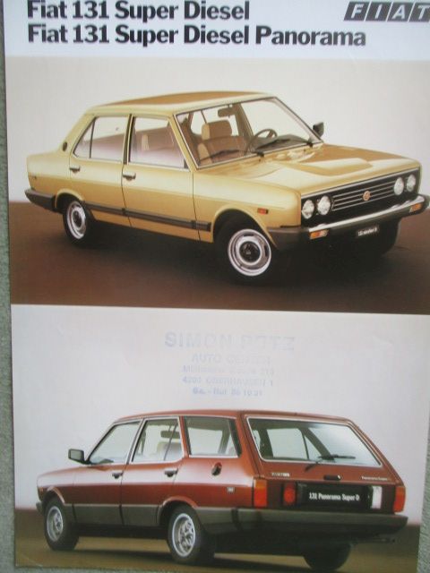 Fiat 131 Super Diesel +Panorama Prospektblatt Februar 1982,Hdl. Stempel vorne drauf