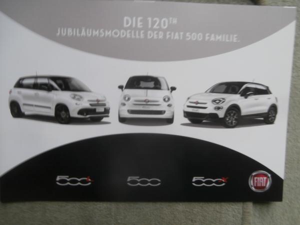 Fiat 500L 500 +X 120th Jubiläumsmodelle Prospekt 2019 mit Preisen,4 Seiten stark.