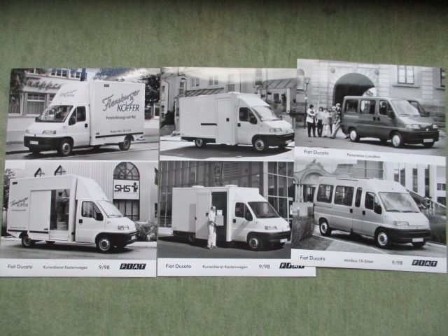 Fiat Ducato Presseofotos 9/1998,Minibus 15-Sitzer,Panorama Luxusbus, Kurierdienst Kastenwagen, 3 Stück,guter Zustand