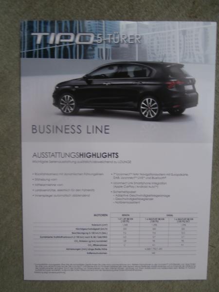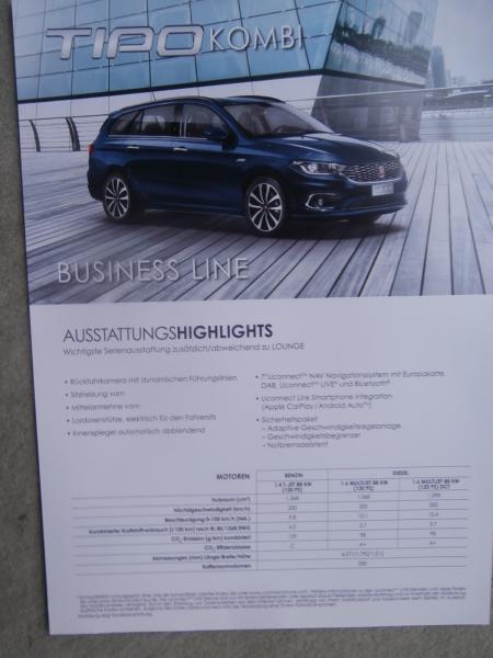Fiat Tipo 5-Türer +Kombi Business Line Benzin Diesel 88kw Prospektblatt,2 Seiter,sehr selten.