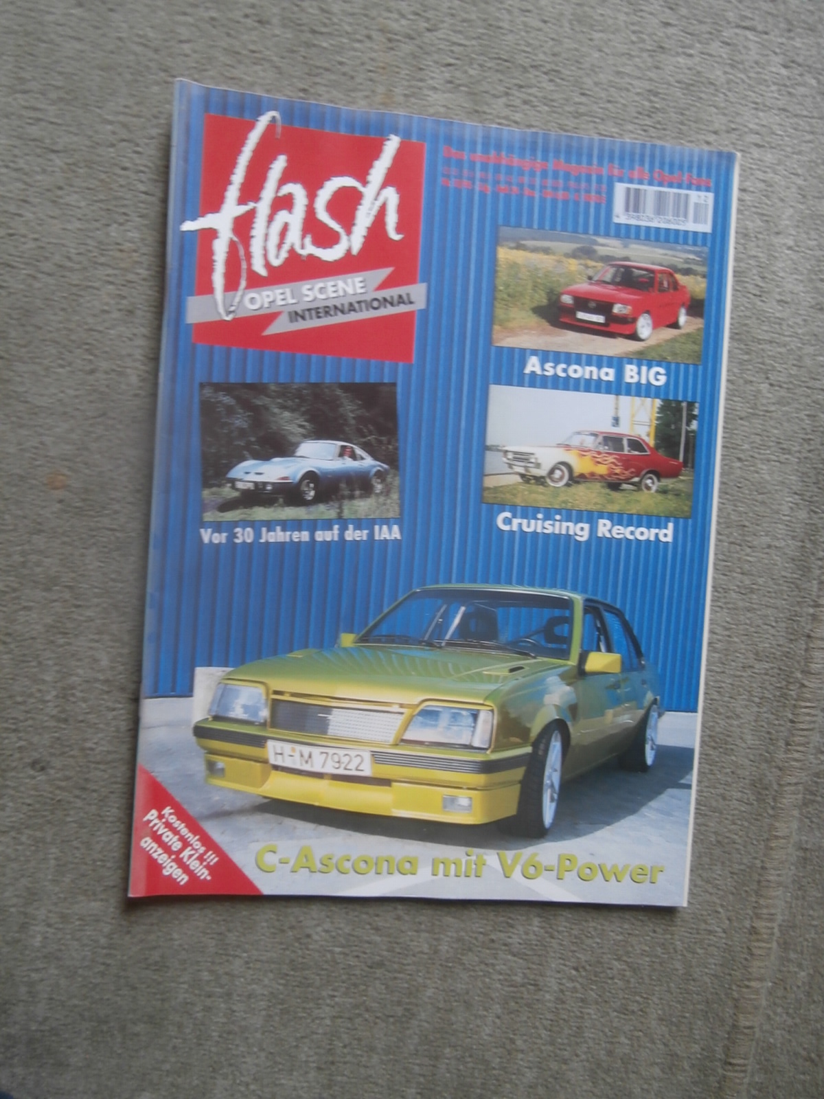flash Opel Scene International 12/1995 Ascona C, IAA 1965 mit GT,Kadett C Stretchlimousine,mit Schnittbild GT Poster,gebrauchtes sehr frühes Heft.