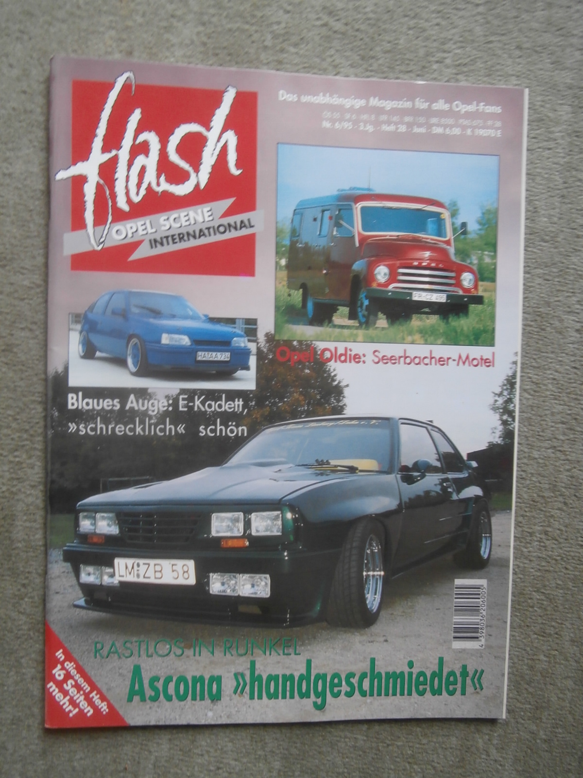 flash Opel Scene International 6/1995 Kadett B 2.0S, Commodore B, Kadett E,Commodore GS/E Coupé,Blitz 1.75t,Opel Calibra Ludwig Poster,seltene Zeitschrift guter Erhaltungszustand.