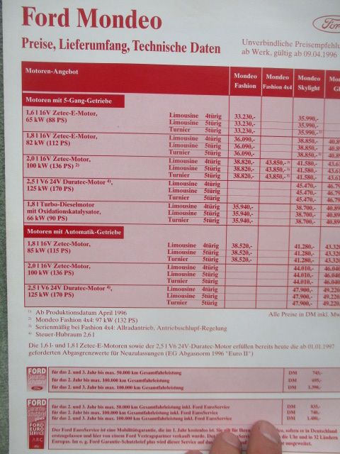 Ford Mondeo 4/1996mit Fashion,Skylight, Ghia, Limousien,Turnier, 4 Seiten stark.