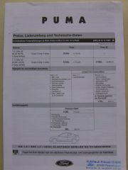 Ford Puma Preisliste Dezember 1999 plus SE und Premium-Paket, leicht Kugelschreiberstreifen (nur 2) vorne drauf.
