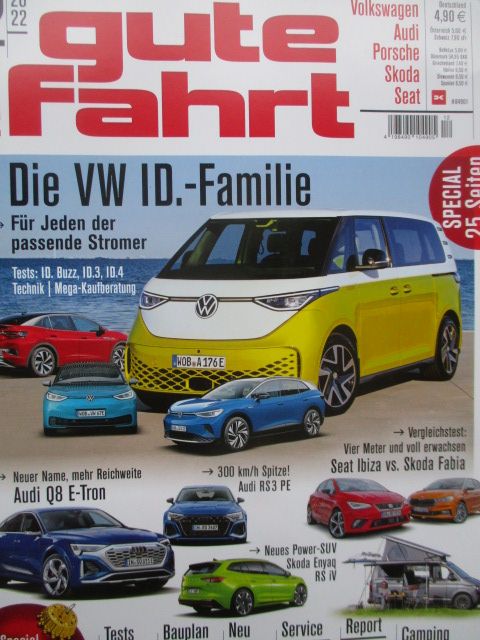 gute fahrt 12/2022 Audi Q8 e-tron,Porsche 911 T, Audi RS3 Performance,Skoda Enyaq iV RS,Golf8 1.5TGI, Special ID-Familie,gebrauchter Skoda Superb Combi,Seat Ibiza vs. Skoda Fabia 1.5TSI DSG,Campmobil Schwerin auf VW T6.1,Ausi AQ8 Quattro,neuwertiges Heft.