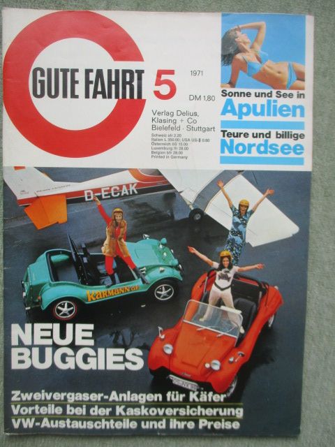 Gute Fahrt Mai 1971 Zwei-Vergaser-Anlagen im großen Vergleichstest am 1302 S,VW Bus T2 im Test mit Preisen,neue Buggies90 Seiten stark,schönes Heft