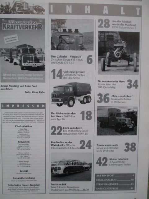 Historischer Kraftverkehr 4/1991 Krupp Mustang,Deutz F3L 516/6 vs. Deutz DX 3.50,NWF-Bus vom Typ BK,Setra S8