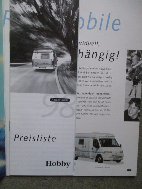 Hobby Reisemobile 1998 600 +L 700 Linie C und B+Preisliste,16 Seiten stark,neuwertiger Zustand.