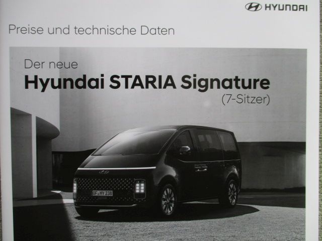 Hyundai Staria Signature Preisliste August 2021 2.2CRDI 130kw,12 Seiten stark.Einzelstück!