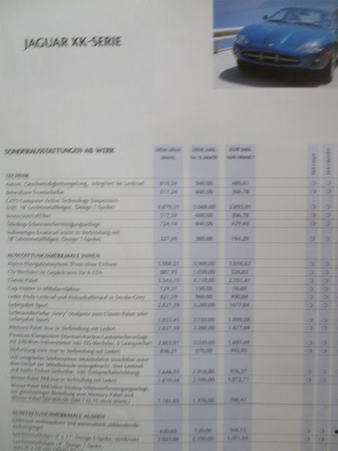 Jaguar Preisliste 24.Februar 1999,S-Type, XJ-Serie,XK-Serie, A4 Format, 4 Seiten stark,selten.